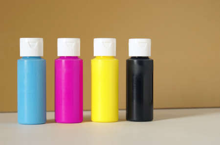A set of toner cartridges for a color laser printer on the background of SMYK. bright creative concept minimal