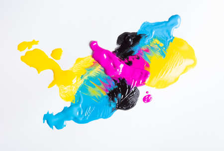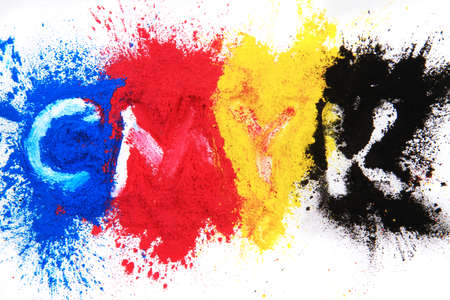 CMYK is short for Cyan, Magenta, Yellow, and Key, the color used for printing. CMYK cubes 3D isolated on white background.