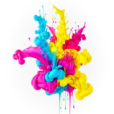 Vibrant abstract splash with paint and liquid movement. Great for expressive designs, artistic posters, and energetic branding.