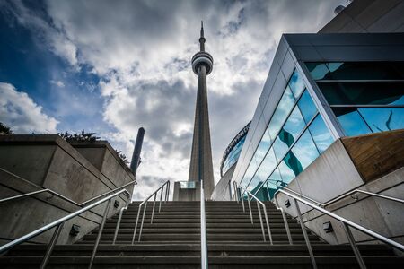 Staircase and the CN Tower in downtown Toronto, Ontario.
