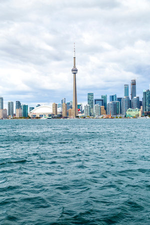 TORONTO,CANADA - JUNE 25,2018 - View at the Toronto downtown from Ontario lake. Toronto is the capital city of the province of Ontario and the largest city in Canada.