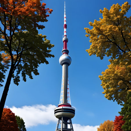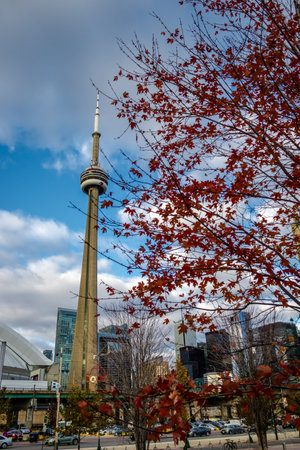 CN Tower and Autumn vegetation - Toronto, Ontario, Canada