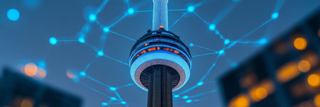 Toronto Iconic Landmark in Blue Digital Network Connection Structure Design, Innovation ,Technology