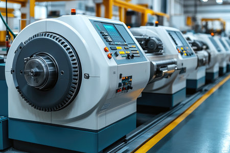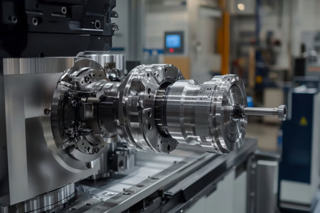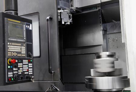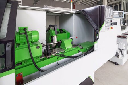 Manufacturing CNC professional lathe machine, Industrial concept.