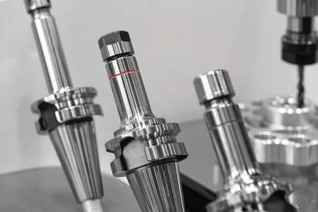 Close up High precision cutting tool (end mill cutter ) set up in holder for cnc milling or machining center