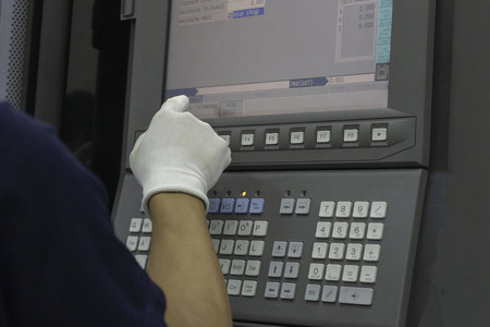Man input data on cnc machine panel control