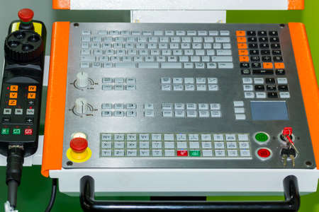 Control panel of metalworking CNC turning machine. Selective focus.