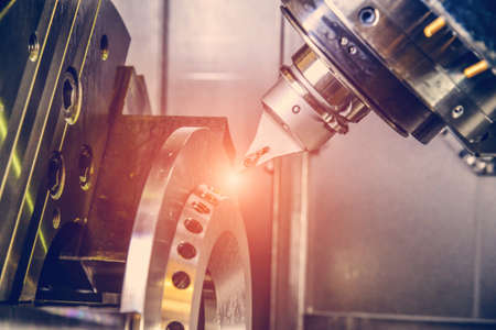 CNC milling machine working, Cutting metalwork process. Milling machine working on steel detail.