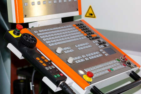 Computer control panel CNC machine. Selective focus. Abstract industrial background.