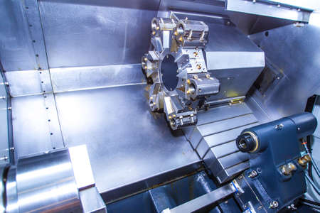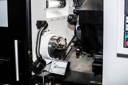 Modern lathe metalworking CNC machine.