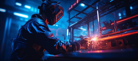 Working welder in action with bright sparks.