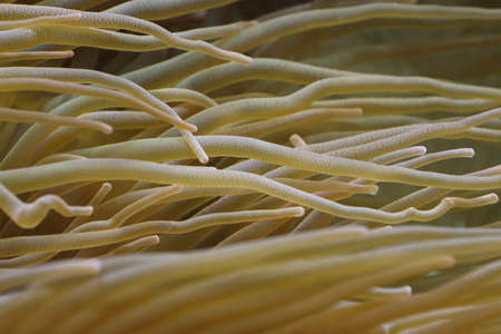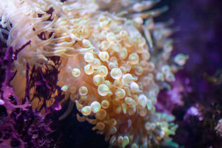 Beautiful sea anemones growing in the aquarium in Germany. Underwater scenery.