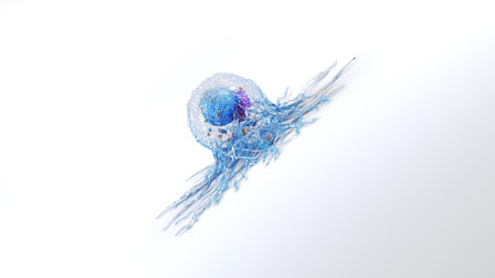 This stunning abstract image showcases a vibrant cell floating in a surreal biological environment, perfect for science and art themes.