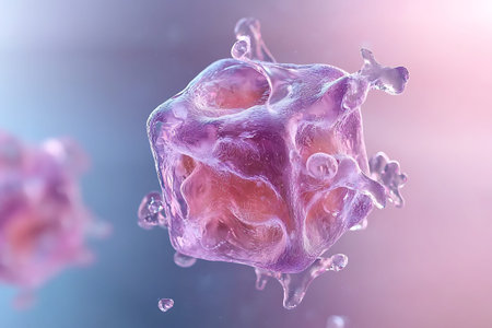 Vibrant depiction of cells under microscope, highlighting biotechnology themes and scientific discoveries.