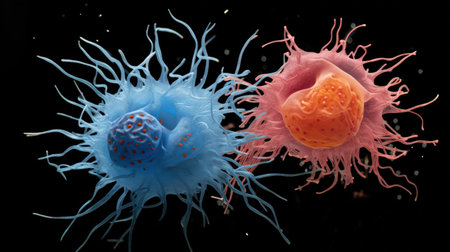 The Macro image of many white blood cells created using Ai