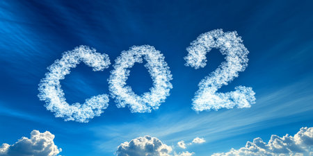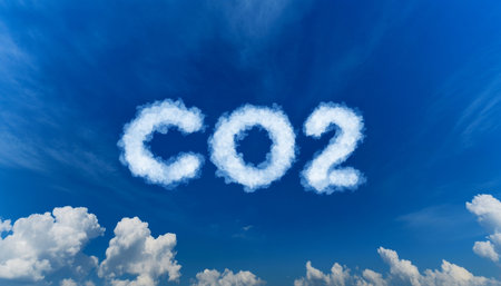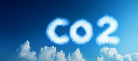 Carbon Dioxide Emission Symbol Against a Bright Cloudy Sky Highlighting Global Warming Concerns