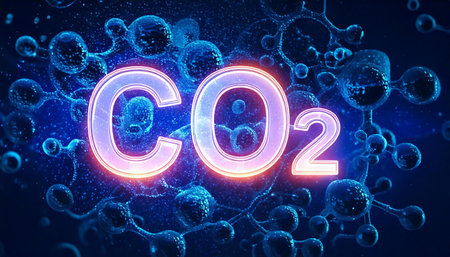 Neon inscription of CO2 against a vibrant oxygen background with molecular structures