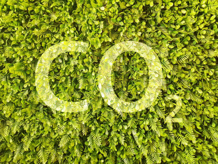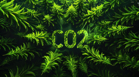 Green foliage forms the letters CO2, symbolizing nature's essence.