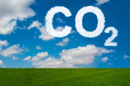 Concept of Ecology and Environment with Symbolic Clouds Forming CO2 Formula in Clear Blue Sky