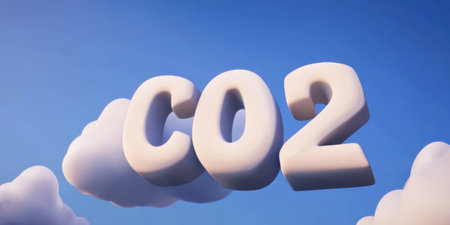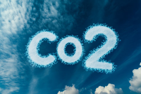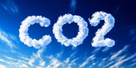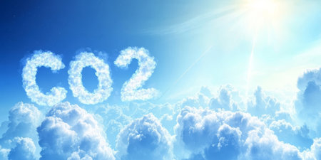 Cloudy CO2 Letters Forming in the Atmosphere Under Sunlight, Highlighting Climate Change Issues