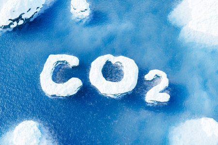 Textured letters create the CO2 symbol, emphasizing ecological themes.