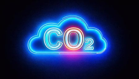 Neon cloud design featuring CO2 symbol in vibrant colors on dark background