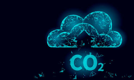 Carbon dioxide CO2 ecology problem eco concept. Renewable organic gas 3D render. Science biofuel chemistry biotechnology polygonal climatic greenhouse effect technology vector illustration