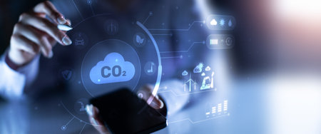 Carbon Emission Monitoring and Sustainable Energy Management ECO Technology concept.