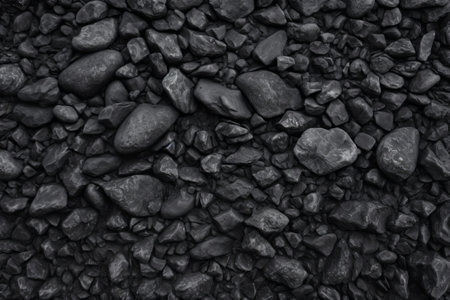 This image presents a rich, dark charcoal texture showcasing various rock shapes and sizes. Ideal for design projects, it emphasizes natural elements and earthy tones.