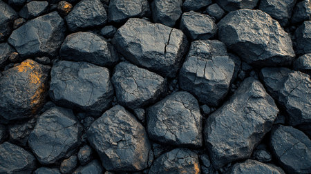 Close-up of a dark, heavy heap of varied coal, highlighting intricate details and rough edges. AI generative.