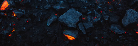 This image features a close-up of glowing charcoal embers. The composition showcases textured black and red forms, suggesting heat and energy. The lighting emphasizes the fiery glow within the charcoal. This image could be used for various projects needing a backdrop, texture or a symbol of warmth and energy.