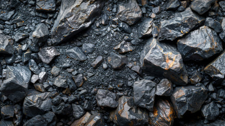 This image presents a rich, dark charcoal texture showcasing various rock shapes and sizes. Ideal for design projects, it emphasizes natural elements and earthy tones.