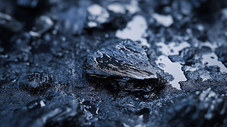Close-up view of high-quality coal pieces on dark surface highlighting texture and shine, showing natural minerals in a mining area during midday