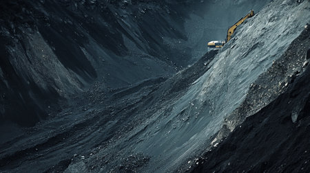 Massive yellow anthracite mining truck at open pit coal mine for industry operations