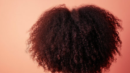 Back view of a woman curly hair, against a solid color background with ample copy space above.