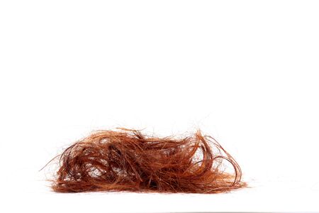 Bright brown hair on a white background close-up