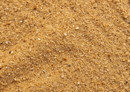 Soft focus captures the beauty of sand grains glistening in morning light, showing a breathtaking blend of textures and colors on a tranquil surface.