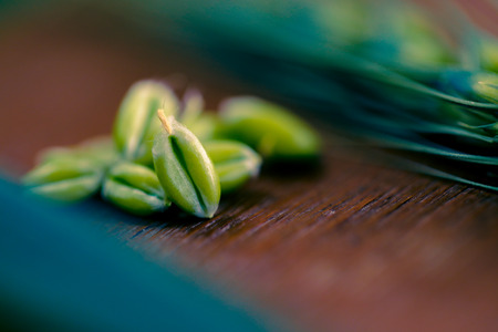Wet seeds germinated rye. Macro. Shallow depth of field.