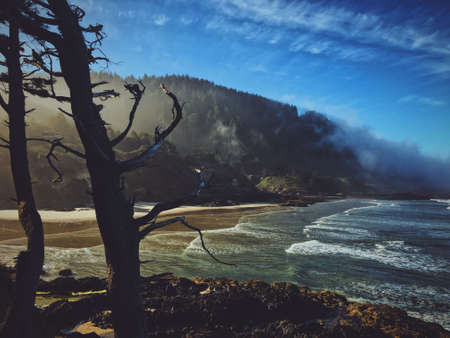 Pine tree on the coast of the Pacific Ocean, California, USA