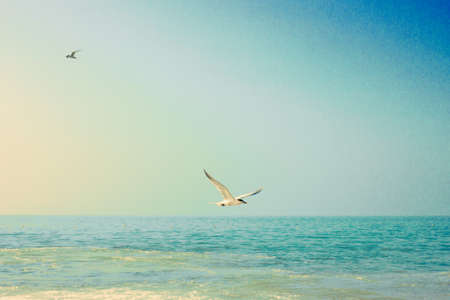 Seagulls flying over the sea. Beautiful seascape.