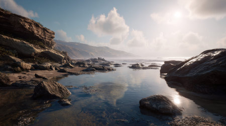 AI Generated. Abstract Coastal Landscape with Smooth Ocean and Rocks