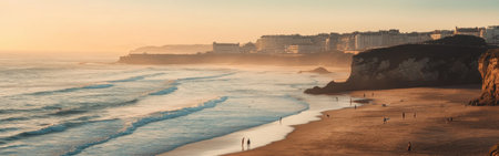 As the sun sets, surfers ride the waves along the beautiful sandy beaches of Biarritz, framed by dramatic cliffs, embodying the lively spirit of Nouvelle-Aquitaine.
