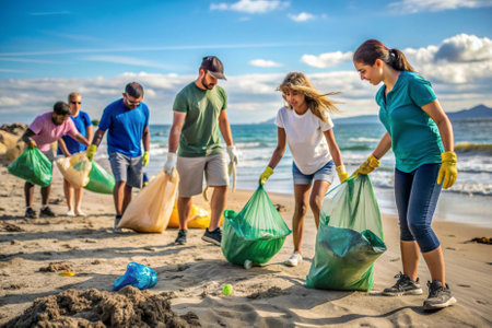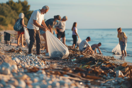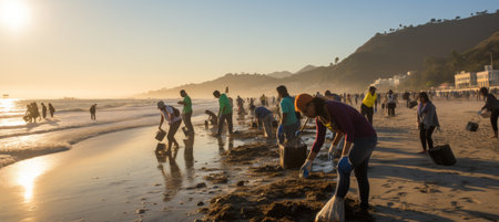 Community beach cleanup initiative coastal shoreline volunteer activity natural environment group effort environmental awareness