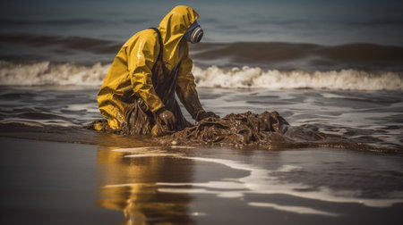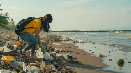 Witness a volunteer cleaning garbage on a muddy beach, restoring nature's beauty. Let's unite for a cleaner, greener world!