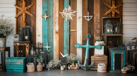 Wooden backdrop with aged charm supporting anchor decoration and beachside elements
