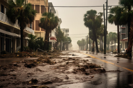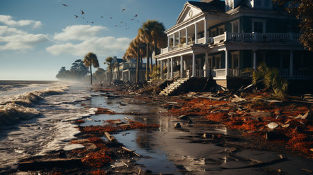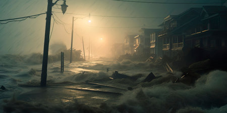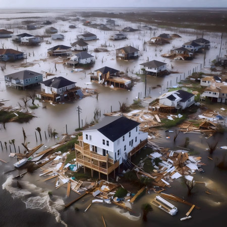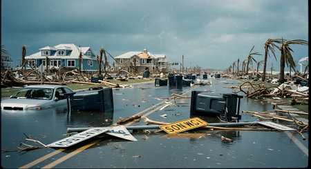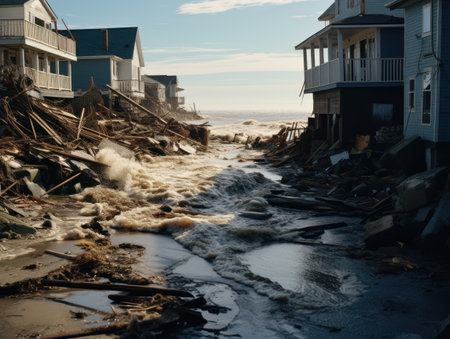 coastal town battered by the relentless force of a powerful hurricane, highlighting the impacts of extreme weather events.