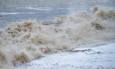 storm on the black sea, waves crashing on the shore, brown water
