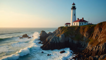Scenic lighthouse on ocean's coast. Yaquina head, Oregon, USA