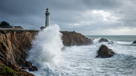 Lighthouse on the Pacific Coast of California, USA. Long exposure.