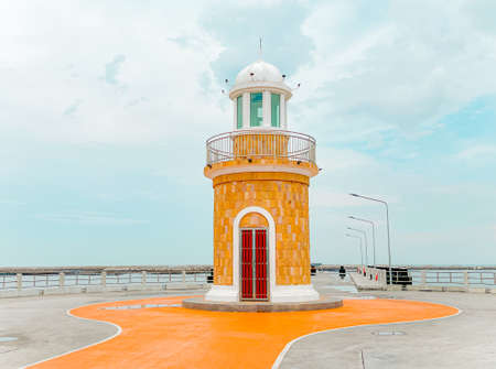 Ang Silla,Thailand - May 7,2022 : Panorama of the morning atmosphere,Lighthouse of Ang Sila Market, the center of Chonburi's seafood for tourists.Chonburi Province Thailand